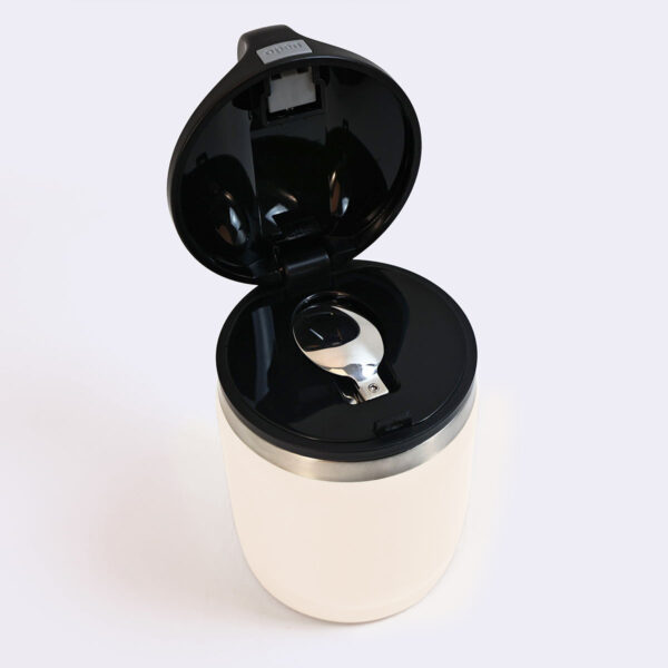 Thoughtful handle + built-in spoon – no more forgetting cutlery!